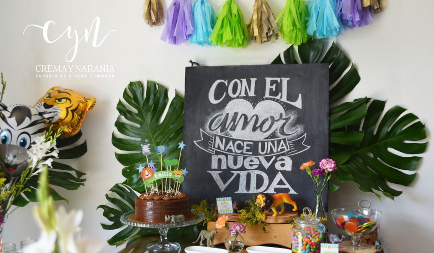 Iniciamos contándoles que los papás del precioso decoraron su habitación con animalitos de la selva, por lo que los quisimos incorporar al evento, eso sí, más enfocados al realismo -pues iban a asistir adultos- y no dudamos en utilizar juguetes de animalitos de la selva -que me encantan- en la producción.