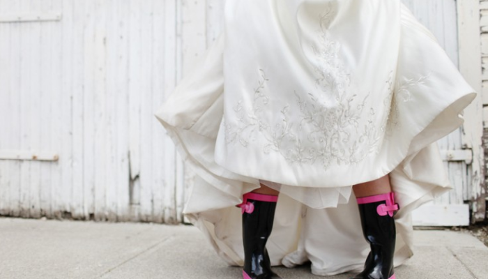 - Botas? Si! Algunas novias son bien atrevidas y encargan previamente unas botas bien bellas, aptas para un diluvio.